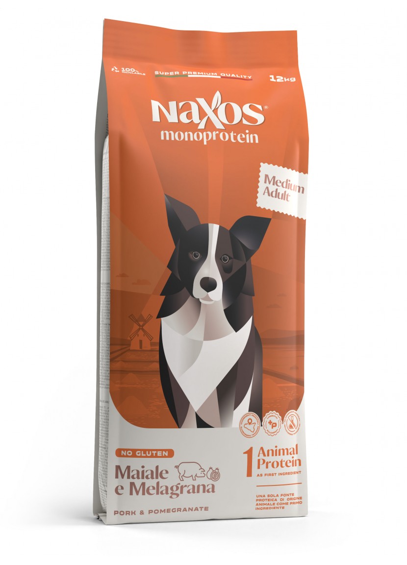 H Naxos Adult Medium – Pork and pomegranate είναι η συνιστώμενη τροφή συντήρησης για ενήλικους σκύλους μεσαίου μεγέθους. Η μονοπρωτεΐνη Naxos είναι μια πλήρης και ισορροπημένη τροφή που παρασκευάζεται με μια αφυδατωμένη πηγή ζωικής πρωτεΐνης, Χοιρινό Κρέας ιταλικής προέλευσης. Στη συνταγή μας, χρησιμοποιούμε μόνο δημητριακά χωρίς γλουτένη και χωρίς σόγια, καλαμπόκι ή πρόσθετα τεχνητά συντηρητικά.