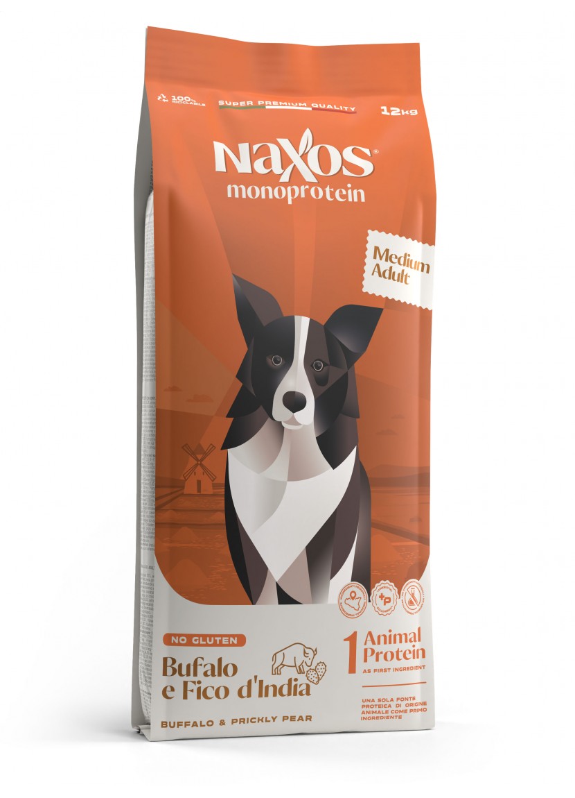 H Naxos Adult Medium – Buffalo and prickly pear είναι η συνιστώμενη τροφή συντήρησης για ενήλικους σκύλους μεσαίου μεγέθους. Η μονοπρωτεΐνη Naxos είναι μια πλήρης και ισορροπημένη τροφή που παρασκευάζεται με μια αφυδατωμένη πηγή ζωικής πρωτεΐνης, Βουβαλίσιο Κρέας ιταλικής προέλευσης. Στη συνταγή μας, χρησιμοποιούμε μόνο δημητριακά χωρίς γλουτένη και χωρίς σόγια, καλαμπόκι ή πρόσθετα τεχνητά συντηρητικά.