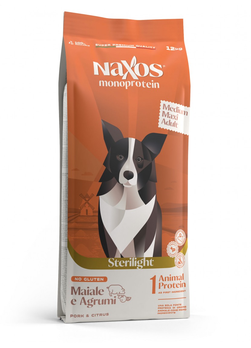 Sterilight NAXOS MONOPROTEIN Medium/Maxi ADULT ΧΟΙΡΙΝΟ & ΠΟΡΤΟΚΑΛΙ 12KG