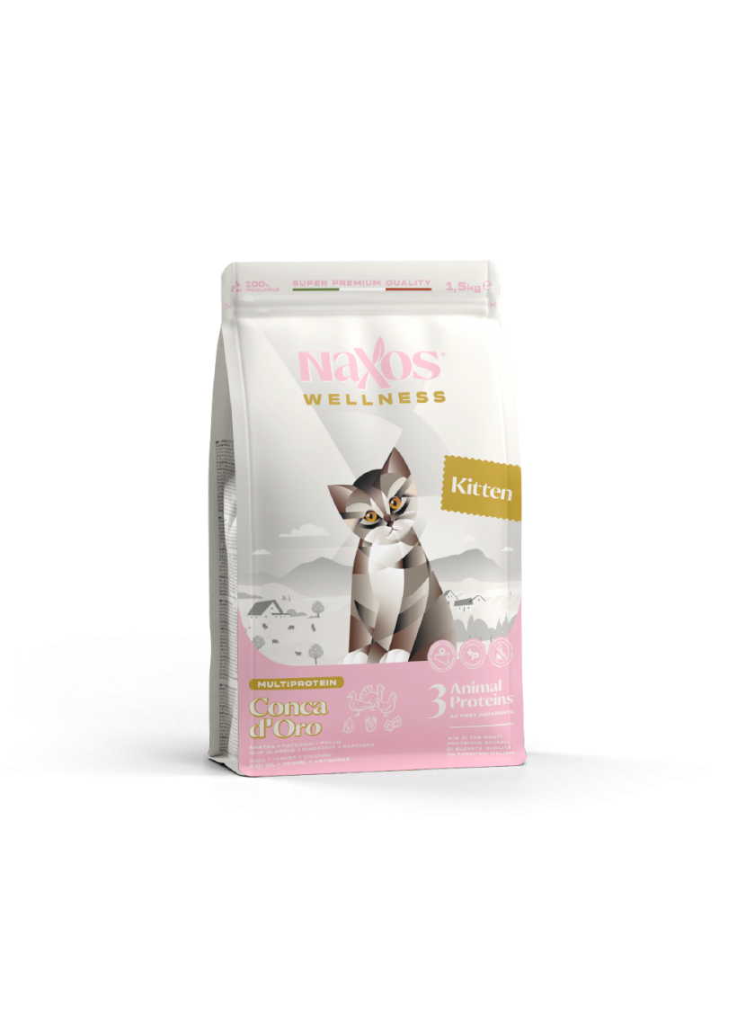 Η Naxos Kitten Conca d’oro είναι μια πλήρης και ισορροπημένη ξηρά τροφή για γατάκια ηλικίας 2-12 μηνών και για έγκυες και θηλάζουσες γάτες.